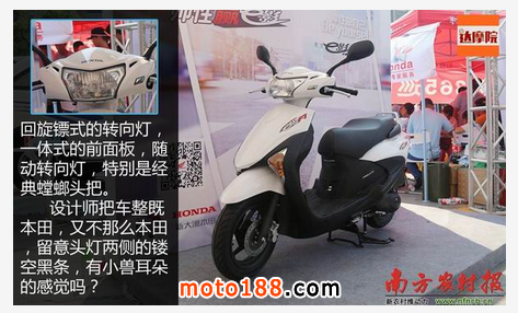 回旋鏢式的轉向燈,一體式的前面板,隨動轉向燈,特別是經典螳螂頭把。設計師把車整既本田,又不那么本田,留意頭燈兩側的鏤空黑條,有小獸耳朵的感覺嗎?