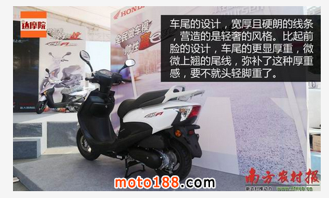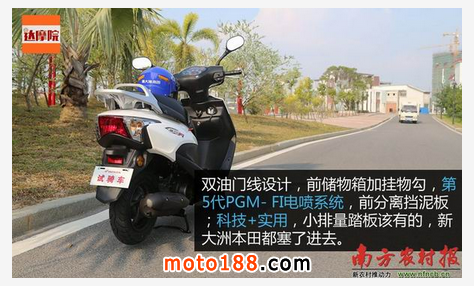 雙油門線設計,前儲物箱加掛物勾,第5代PGM- FI電噴系統,前分離擋泥板;科技+實用,小排量踏板該有的,新大洲本田都塞了進去。