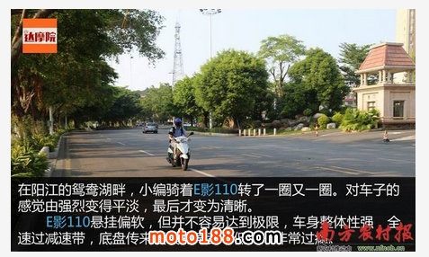 在陽江的鴛鴦湖畔,小編騎著E影110轉了一圈又一圈。對車子的感覺由強烈變得平淡,最后才變為清晰。