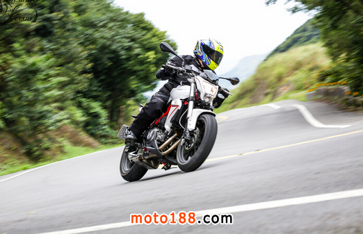 談完動力,再來看看TNT 300的懸吊表現吧,雖然有著倒立式前叉及中置側邊避震,不過過於偏軟調性的懸吊則讓此車的過彎性能大打折扣,或許是測試車的關系,行程偏長的前叉支撐力道不足,卻又搭配制動力超強的煞車
