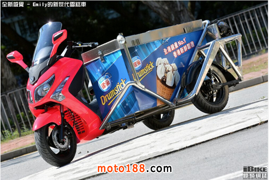 只要是香港人,一講起雪榚車,腦海馬上會聯(lián)想到兩種車:播著藍(lán)色多惱河音樂的軟雪榚車,和有一個巨形冰柜的三輪電單車。常見的三輪雪榚電單車,通常都是一位伯伯,開著偉士牌綿羊。所以當(dāng)我們看見Emily開著她雪榚電單車時,簡直不敢相信自己的眼睛:賣雪榚的人,竟然由伯伯變?yōu)榻憬恪ナ渴植ㄨF殼二沖綿羊,也變?yōu)槿朣YM Joymax 300i自動波綿羊,世界真的變了。