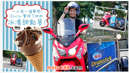 其實(shí)Emily本身是一位化妝師,工作時間頗具彈性,再加上懂得駕駛電單車,所以當(dāng)政府在09年推出六十一個冰凍甜點(diǎn)流動小販牌照時,便決定入紙申請。當(dāng)年申請情況非常踴躍,老編也有入紙,可惜輪候號碼是兩千多號,騎著電單車賣甜筒這個夢想總算是完全絕望了。相反地,Emily非常幸運(yùn)地獲到較前列的輪候號碼,最後順利以後補(bǔ)形式,成功申請到這個珍貴的冰凍甜點(diǎn)流動小販牌照。