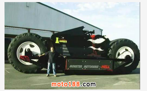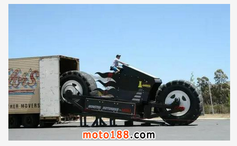這輛號稱世界上最大的摩托長達9米,高3米。它來自澳大利亞,其裝備了一臺柴油卡車引擎,還配備了6速自動變速箱。它可以輕松碾壓一輛汽車。