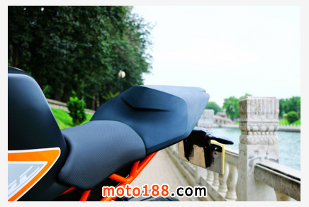 分離式手把、820mm坐高、硬且薄的坐墊配合較高設定的腳踏,這些讓RC390的坐姿想不“戰斗”都不行,和中大排量仿賽車款的坐姿無異。如果騎個百十公里爛路那對頸部、腰部和PG絕對是“煎熬”。以上種種“煎熬”,倒是讓RC390的運動風格更加凸顯,讓你壓彎可以“爽”到極點,因為RC390就是為運動而生的。