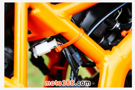 原本左側碩大的“KTM”,被“R2R”(Ready to Race)取代,這讓國內版RC390少了一分“虛榮心”。原因是“KTM”已經被國內某摩托車廠家提前注冊,導致KTM不得不采用全新的商標“KTM R2R”,但是KTMR2R就是KTM,是無法被替代的。市售版RC390油箱上的“CFMOTO”等字樣,說明了它的產地。