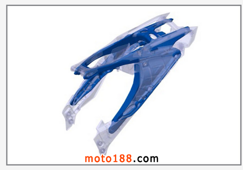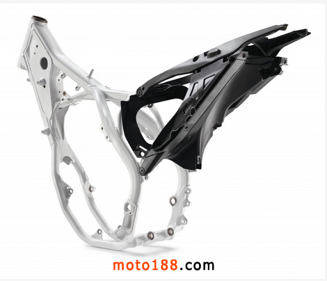 水滴形、雷射切割、由機械人銲接的車架正好將引擎緊致地包裹起來,新設計、高質物料等皆由WP PERFORMANCE SYSTEM全程包辦,令全新車架比起舊有的省卻380g重量,成功的車架,設計自然帶來更理想的操控性。