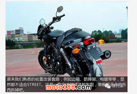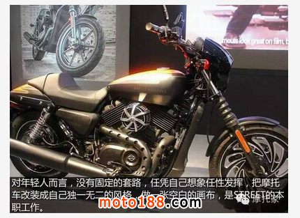 在我看來,玩風格,是STREET的唯一出路,雖然它的機動性能是哈雷家族中的優等生,但還是和本田、杜卡迪等高手差了不少。比格調,這可是歐日對手無法企及的,如圖高瑾馨女士所說,這張空白的畫布具備無限的創作空間,油畫還是漫畫,比的是精神層面的東西,哈雷品牌的魅力,是遠超過一部摩托車本身的。