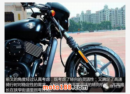 除了在哈雷的老家美國,城市,向來是歐日品牌摩托車的領地,駕駛一部笨重的哈雷摩托車擠進鬧市的車流,是一件痛苦不堪的事情。主打城市的STREET 750,216kg的重量,比底座板883還輕巧了30kg,32度的轉向頭轉向角,是哈雷家族中最大的,而規格為100 80/R17的前胎,同樣是哈雷家族中最纖瘦,最后加上充沛的低扭響應,讓新車具備絲毫不亞于歐日“城市街車”的機動性能和靈活性。