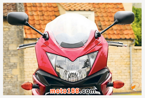 前風擋和倒流片對上半身和膝蓋的作用還是很大的,但是前風擋高度中等,而且不可調,在高速時候(對頭盔)存在很小的氣流沖擊。坐墊即使跑長途也很舒服,不管騎士高矮坐姿也比較舒服。雖然沒有全可調節懸掛,但是即使壓上254Kg的重量,這車操控性和加速性能出奇的好。龍頭很輕,轉向靈敏,高速的時候離地距離有充足的余量,所以可以大膽的加速。謝天謝地,21世紀了,Suzuki終于加裝了ABS系統,雖然只是基本款的ABS,而不是其他主流車高級的過彎ABS系統。