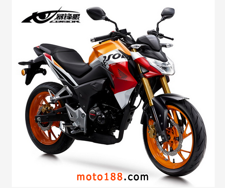 外觀造型: 1、暴鋒眼CB190R,外觀上第一眼就給人大排車型的體量感,油箱立體感很強,使整車體現一種凹凸有致的印象。這與現有車型有強烈的差異化,這將是引領未來2輪造型流行趨勢的車型。 2、上翹的尾部,同時頭部下沉,這種強烈的俯沖趨勢極具速度感和攻擊性,就像是猛獸在撲食之前最具爆發力的姿態; 3、將重心向發動機集中形成緊湊型的外觀,然后結合穩定的底盤來達成梯形輪廓設計; 4、重量集中化設計,它包括了頭部小型化,并且與車身更加連貫,有一體感,還包括縮短尾部與排氣管的造型。這些細節處理都使得車身前后荷重達到完美的50比50,讓 乘騎者有人車合一的感覺。這種設計目前只運用在motoGP賽車和高端摩托車上 。5、坐姿方面,采用一種適中的姿勢,無論在城市運動或者長途駕駛,都感覺一樣的舒適。并且在乘騎的時候會明顯感受到視野非常寬廣,有強烈的向前沖刺感,路上的風景一覽無遺,會有一種浮游的駕駛感受。