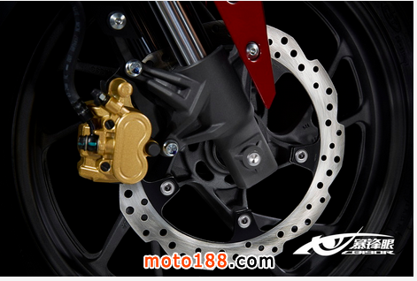 動力性能: 1、搭載的是HONDA在國內首次投入的,也是全球同步的核心3#發動機; 2、針對中國的市場,提升了低速的扭矩,通過加長活塞行程來實現, 在這些基礎上,我們通過緊湊型設計,保證了發動機的重量、尺寸沒有增加。 3、我們首次采用了針刺型缸套來保證機油消耗量。 4、在搖臂上使用了高成本的管針軸承,通過減小摩擦降低油耗,同時也提高壽命。 5、另外在高端車常見的平衡軸上,將單側大型平衡塊改為雙側小型平衡塊,在保持平衡效果不變的前提下,通過減少平衡塊對機油的攪動損耗,降低油耗。 6、在加上HONDA獨有的PGM-FI電噴的采用,暴鋒眼CB190R擁有堪比250排量的加速性能和小于150排量的油耗,我們稱之為黃金排量。