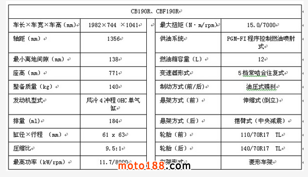 2015年8月25日,Honda重磅推出兩款極具魅力的全新運動款車型CB190R、CBF190R。其中,CB190R將由五羊-本田摩托(廣州)有限公司生產銷售、CBF190R將由新大洲本田摩托有限公司生產銷售。