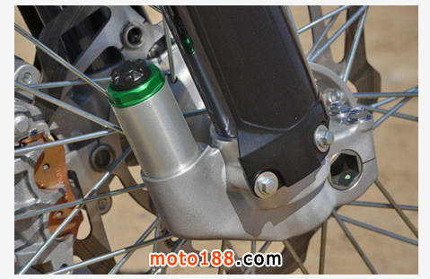 2016款KX450F車身整體寬度有所減少,坐墊也變得更窄,不過舒適性卻并沒有降低,反倒是給車手更多的活動空間。960mm的坐墊高度能夠適應大部分的車手,不過對于身高較高的車手來說,新款車型的腳踏能夠降低5mm的高度,此外車把也能夠根據(jù)車手需要進行調整,因此對于絕大多數(shù)車手來說都能夠輕松找到一個理想的姿勢。新款KX450F的后懸掛也進行了升級,Showa避震能夠提供足夠多的設定以滿足客戶的需求,彈簧的預載也從53N·m降低到了52N·m。前270mm后240mm直徑的制動盤和Nissin卡鉗提供了非常出色的制動力,這也是KX450F值得表揚的地方之一。