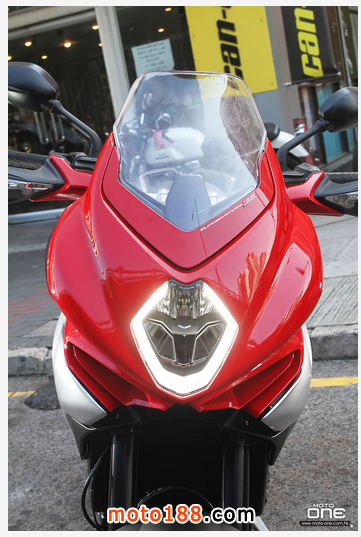●2015 MV Agusta Turismo Veloce 800 美觀的頭燈及手擋內置指揮燈。
