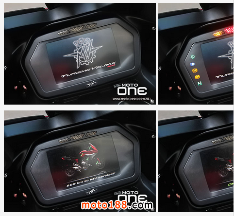在近年推出的新一代MV AGUSTA車輛上,均裝有廠方自行研發的MVICS電子套餐,包括4個馬力選項(其中一個自行設定)及8段式的循跡系統等等,而全新Turismo Veloce 800及Turismo LUSSO 800,廠方使用了第二代的電子系統-MVICS 2.0。分別在于提升了電腦獲取數據的精準度外,就連拖波(退檔)也無須使用轪把上的離合,腳掌只要一踏,電腦自動計算最佳轉數衍接,并自動補油,跟頂級 的MV Agusta F4RR看齊,新車當然還有快速電子升檔(Quickshifter)裝備。除此之外還有防止油門控制不當導致車頭升起的Anti Wheelie System(防起頭),這些電子裝備均是首次在旅行車上車使用,另一個功能是自動定速巡航模式,選定車速后無須扭動油門車輛自動行駛,可減輕手腕長時間 扭油造成的疲勞,適合長途使用,只要扣動掣動便回覆正常運作。