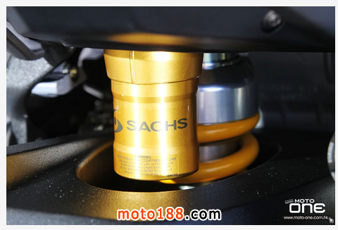 今次率先抵港的Turismo Veloce 800屬標準版本,備有啞灰及紅銀兩種車身配色,而今次拍攝紅銀車款更配備了原廠的兩則旅行尾箱(屬另行購買的配件),讓讀者清楚看到Turismo Veloce 800原廠形態及配備旅行尾箱的分別。而標準版使用傳統的全調校Marzocch倒立前叉,回彈、下壓及預載一應俱全。Sachs漸進式單筒避震,全功能 調校,行程與Marzocch倒立前叉同樣為160mm。