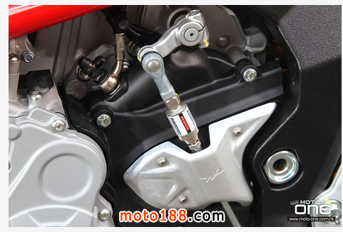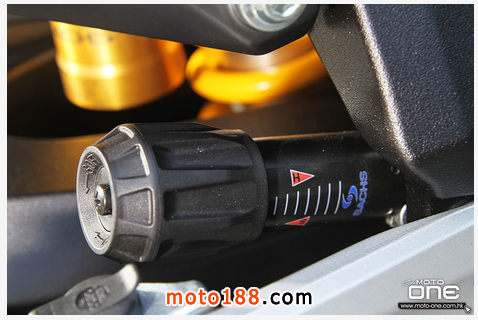 ●2015 MV Agusta Turismo Veloce 800 標準版採用Sachs漸進式單筒避震,全功能調校,行程與Marzocch倒立前叉同樣為160mm。