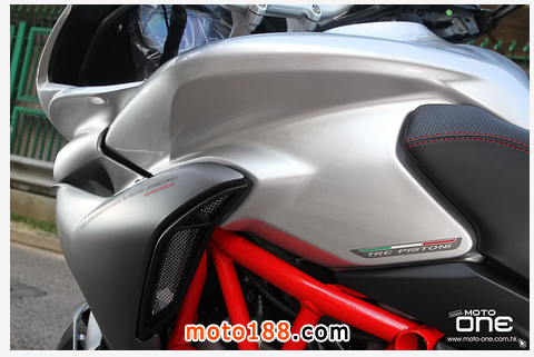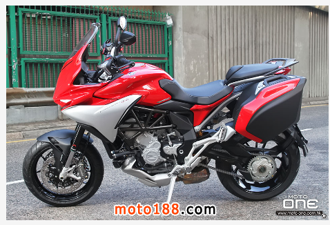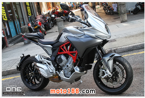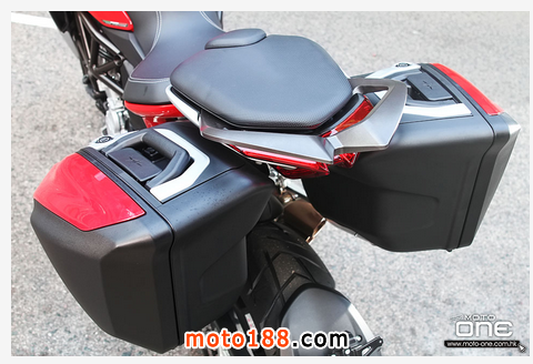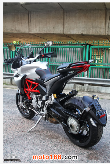 ●紅銀車身的2015 MV Agusta Turismo Veloce 800已另購了原廠的旅行邊箱,啞灰色車身為原廠的設定。