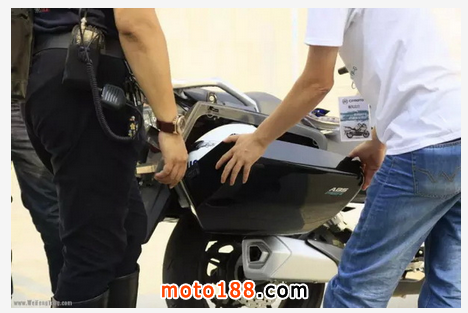 經(jīng)測試,全盔可以放進(jìn)側(cè)箱,但只能一個(gè)特殊的角度
