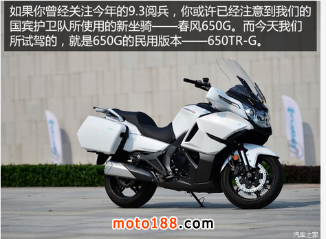 在今年(2015年)的反法西斯閱兵上,不知道您是否注意到了一個亮點,那就是扮演國賓車角色的摩托車,是由國人自主研制的春風(fēng)650G所擔(dān)任。然而,很多人一定也很關(guān)心這輛車到底有沒有民用版推出呢?答案是有的,就在日前,春風(fēng)正式宣布國賓車民用版650TR-G的售價——59800元整。這個價格,在互聯(lián)網(wǎng)上似乎是引來了一些小小的雜音。不過,先別急著噴價格,因為經(jīng)過一天的試駕,我認(rèn)為59800的售價中,或多或少有些“情懷”的成分在里頭,但是,如果你覺得比650TR高出一萬元整的金額全部都是“賣情懷”,那可就有失公允了。