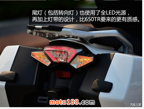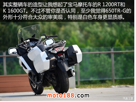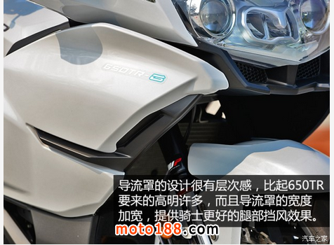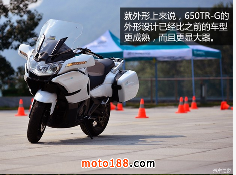 其實從車身外觀看來,650TR-G的外形已經(jīng)與650TR有很大的不同,整輛車看起來似乎是大了一圈,變得更壯碩了,而且細(xì)節(jié)的設(shè)計也比之前更成熟,看起來甚至有些像寶馬R 1200RT或者是K 1600GTL。整體而言,它的外觀比起以前的任何一款產(chǎn)品顯得更有層次感,算得上是國產(chǎn)車中的佳作。