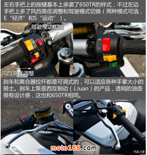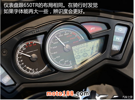 看完了外觀設(shè)計,接下來就是硬件配置了。其實這輛車的硬件結(jié)構(gòu)基本上承襲了650TR的布局,原廠是在現(xiàn)有的架構(gòu)上進行優(yōu)化,不管是在操控上,或者是發(fā)動機的響應(yīng)上,650TR-G給人的感覺是有所進步的。