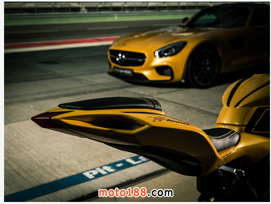 專為四輪而設(shè)的法蘭克福車展,以前跟電單車關(guān)系並不密切,不過自從Mercedes及 AUDI先后收購(gòu)MV AGUSTA及DUCATI后,成為了電單車界另一個(gè)戰(zhàn)場(chǎng)。MV AGUSTA為了慶祝與Mercedes的合作,將會(huì)在法蘭克福車展上,展出拉上Mercedes-AMG GT花的MV AGUSTA F3 800,鮮黃色的車身配上黑色AMG標(biāo)記的配色非常搶眼。全新Mercedes-AMG GT在2014年率先曝光,并于今年發(fā)售。這款雙門跑車是繼SLS AMG后,第二款由Mercedes-AMG全面負(fù)責(zé)設(shè)計(jì)及研發(fā)的超跑,車輛分別有GT標(biāo)準(zhǔn)版及頂級(jí)GT S版本,前者馬力輸出是462hp,頂級(jí)版輸出510hp馬力,但同樣配備4.0公升V8 biturbo引擎,採(cǎi)用AMG SPEEDSHIFT DCT 7速雙離合器半自動(dòng)波箱。