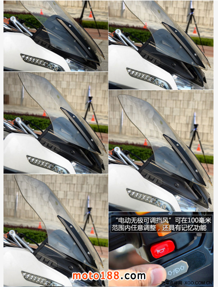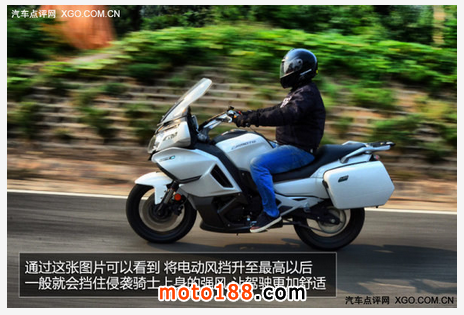 值得一提的是,創(chuàng)新設計的“電動無極可調擋風”更是為愜意的摩托車旅行錦上添花,可以滿足不同身高人群和不同行駛狀態(tài)下的需要。不僅可實現(xiàn)100毫米范圍內的任意位置調整,還具有位置記憶功能,這一功能只有在國外高端品牌的頂級旅行車上才會出現(xiàn)。