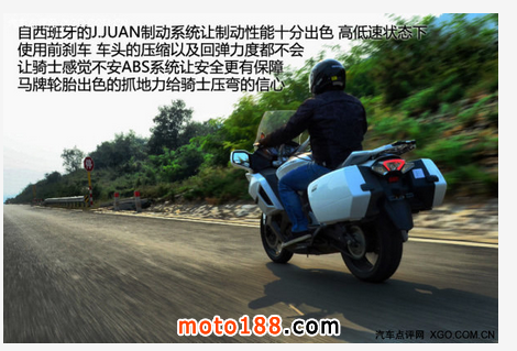 來自西班牙的J.JUAN制動系統(tǒng),針對春風650TR-G國賓車民用版的需求進行特別調教,并配合同行業(yè)中頂級的德國大陸ABS防抱死制動系統(tǒng),讓安全性得到了大幅提升。而業(yè)內著名的WP倒立式可調前叉、后減震讓操控更加出色。