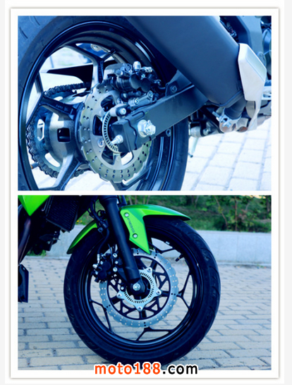 200 DUKE和Z250SL ABS制動效能方面的表現也可謂尺有所短寸有所長。200 DUKE不具備ABS制動防抱死功能是遺憾,而且200 DUKE后制動較為容易發生抱死現象,但是200 DUKE所采用BYBRE(BREMBO和博世印度合股公司產品)制動系統配置較Z250SL高,200 DUKE采用BYBRE輻射式對向四活塞卡鉗、300毫米前浪花制動盤在制動時會給你帶來“撞墻”的效果而且較為敏感。Z250SL ABS相比200 DUKE的優勢在于配置了日清ABS防抱死,擁有更好的制動安全性和穩定性,但是如果拋開ABS功能不說的話,200 DUKE制動效能略強于Z250SL,倒不是說Z250SL制動不好只是與200 DUKE相比顯得更平庸、更均衡。