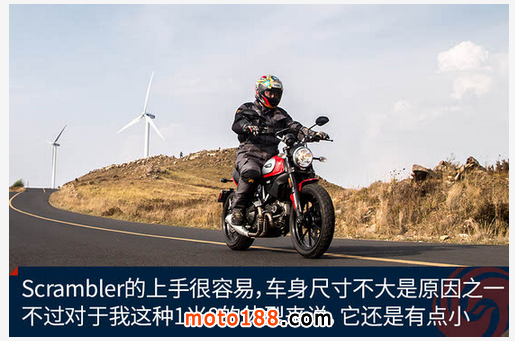 Scrambler并不一樣,盡管它是一輛杜卡迪,但似乎脾氣好了很多,就像北京金隅隊(duì)的馬布里一樣。廠家的人解釋說因?yàn)闅忾T疊加角調(diào)整到了11°,目的就是為了要抑制那種慘無人道的爆烈輸出,從而讓更多的人進(jìn)入到杜卡迪的世界。