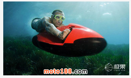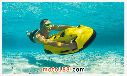 有了它,潛水者就能像海豚一樣在水里自由遨,該裝置可以潛到深 40 米的水下,并能持續(xù)運行 1 小時。Seabob F5 S 的速度是通過輕擊它的10個轉(zhuǎn)動裝置,手動控制。潛水者借助體重改變這種裝置的傾斜度,操控它的運行方向。