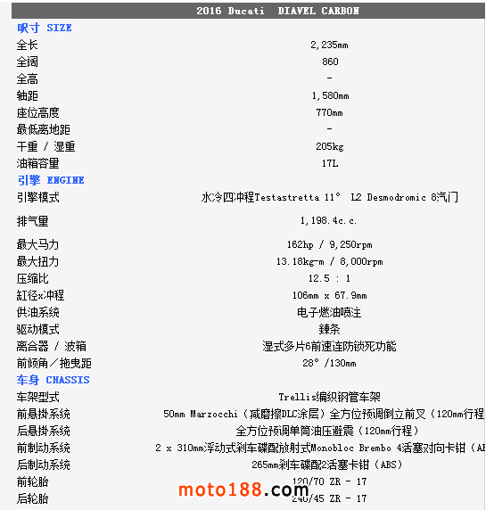 ●2016 DUCATI DIAVEL CARBON版擁有新拉花及改用新鍛造輪框。