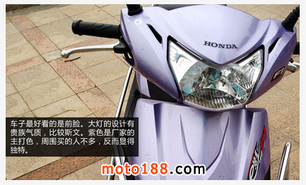 車子最好看的是前臉。大燈的設計有點貴族氣質,比較斯文。紫色是廠家的主打色,周圍買的人不多,反而顯得獨特。