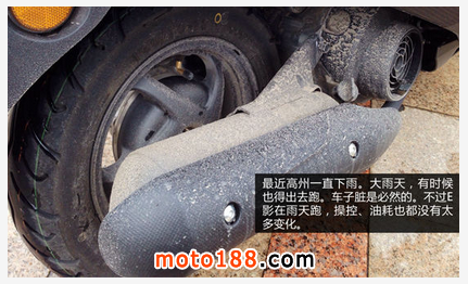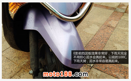 E影前擋泥板效果非常好,下雨天完全不用擔心泥水會濺起來。以前的100C,下雨天騎,泥水非常容易濺起來。