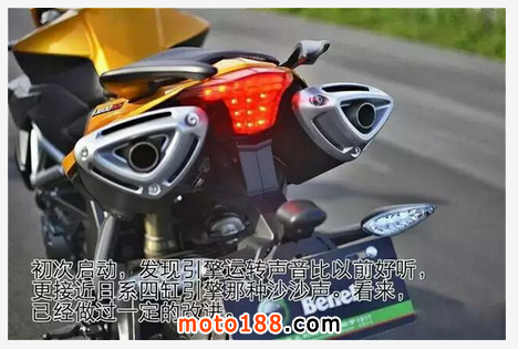 新車的引擎應該是經過調校,排氣管也應該有改進,四缸的排氣聲浪明顯好于之前。大蝦在2012年試駕的第一代黃龍600,那時候和FZ6對比,排氣聲浪要尖銳一些,也缺少一些質感。現在600可以說,更像是一輛日系車了。