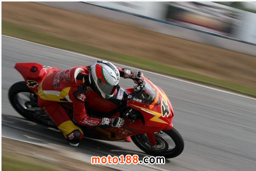 每一次觀看何智鋒的比賽就是一種享受。每一個出彎入彎,何智鋒如行云流水,更是與宗申 RC250R賽車“人車合一”。在每一個彎道用最合理的檔位速度與最佳的線路切入猶如教科書一般規(guī)范,車載攝像頭錄下的過彎視頻更是成為車隊年輕車手學習 的資料。第二回合決賽,何智鋒以領先對手近4秒的優(yōu)勢第一個沖過終點。