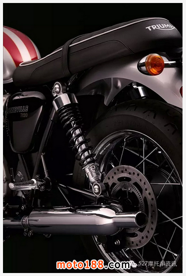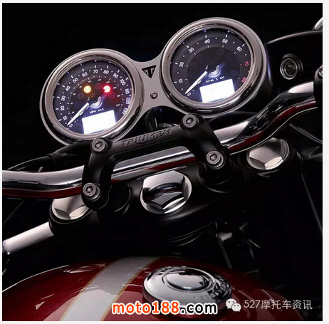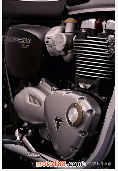 Bonneville T120 和T120 Black兩款車型并無太大差別,二者均搭載全新的1199c.c.水冷發動機,峰值扭矩約為104.4牛米(3100轉),新發動機峰值扭矩比Bonneville車型原款發動機的峰值扭矩(68牛米)提升54%,相信全新發動機也一定會給該車帶來更大的馬力提升。配置方面,新車標配ABS、電子節氣門控制系統、牽引力控制系統、可調節騎行模式、滑動離合器、LED燈光系統、加熱手把、USB充電插口。與Thruxton車型相似,該車的儀表盤也可顯示騎行模式、檔位、車速、里程、油量及MPG等信息。同時,新車還采用Nissin雙活塞卡鉗和Vance & Hines排氣等高端零部件。