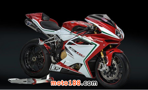 MV Agusta F4 RC 限量版是最大馬力市販SUPERBIKE,近日進入美國市場,它首次亮相是在澳大利亞菲利普斯島的世界超級摩托車比賽(WSBK)第一場比賽,全世界僅限量250臺,其中進入美國市場只有20臺。限量車型和WSBK賽車采用相同的技術特點和精密材料。前后電子避震版本,配備先進的調整油壓阻力技術的電子避震,電腦會根據行車狀況不斷改變油壓,從而提供最佳吸震效果。并且電子避震可設定單人、雙人、單人加行李箱等等。