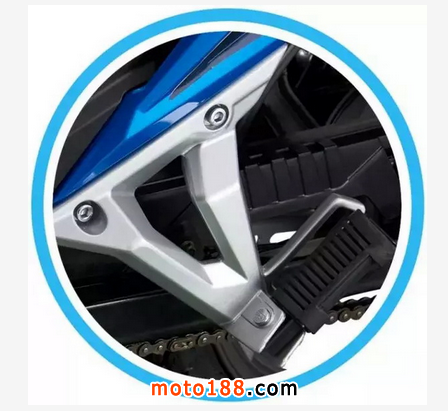 加厚鋁合金后腳蹬:采用貝納利技術大排量后腳蹬支架設計,加厚鋁合金材質,干凈利落有質感,棱角分明特結實。