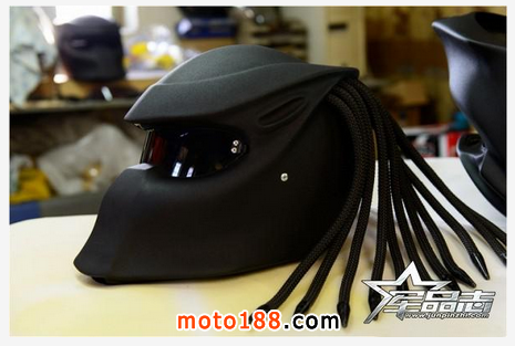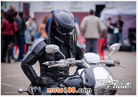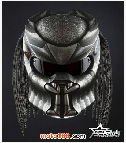 可能大家對Nitrinos這個品牌還不很了解,Nitrinos是一家來自俄羅斯的創意護具公司,(戰斗民族的產物啊……)目前主要經營一些創意性很強的摩托頭盔。為突出創意性,Nitrinos經常參考影視作品中一些經典造型,在獲得專利授權后,制造出個性十足的頭盔。這款頭盔正是以影視作品《鐵血戰士》中主角的面具為藍本而生產的,由于他家產品的產量不算大,因此頭盔上部分部件是純手工制造的。Nitrinos的裝備大多給人一種很酷、很勁爆的感覺,騎士們戴上Nitrinos的頭盔,回頭率瞬間直逼200%......