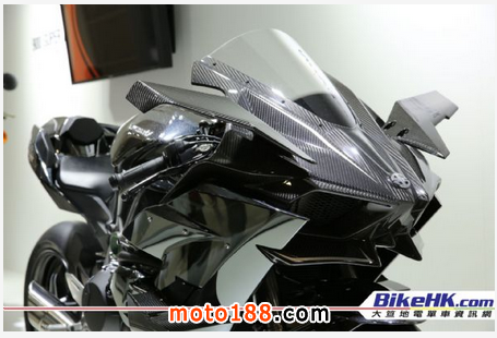 H2R其實也不用多介紹,但看著這張H2R的現場照,大家可有種說不出的感覺?對了,因為顏色不同了呀!首先油缸上部及鴨尾都加入了閃粉效果,不再是單純的鏡面。其次就是車架沒有用上綠色,只用了銀灰色。車身唯一的綠色,就在引擎上supercharger的標志以及前叉頂的微調。