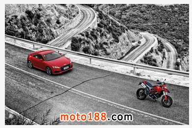 “攻山”戰(zhàn)開始,四輪+兩輪共同出擊,因卓越性能和特色設(shè)計而聞名的意大利摩托名器——杜卡迪Hypermotard駭客,與德國精銳跑車新奧迪TT組合成傲人姿態(tài),帶來樂趣十足的駕駛體驗