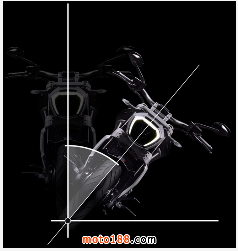 ●雖然Ducati XDiavel S的引擎體積較Diavel大,但車輛仍可達到40度傾則角度。