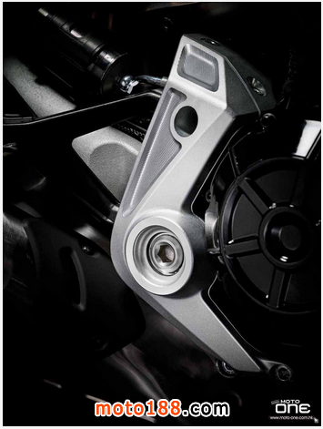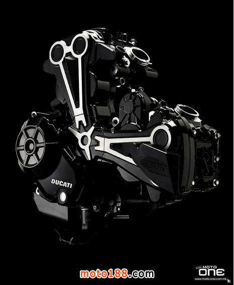 ●沒有水喉的突出,讓引擎更有機械美感。引擎還採用DUCATI DVT搖臂式可變正時控制系統(tǒng)。