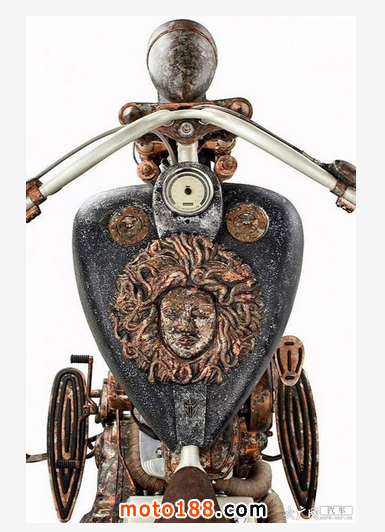 自土耳其的富豪Tarhan Telli設計了一部黃金摩托車,接觸過圖中這臺摩托車的人都承認它有兩種魔力,一方面是難以置信的售價,僅這臺摩托的黃金車架的造價就高達100萬美元;另一方面是這臺摩托的蒸汽朋克造型。