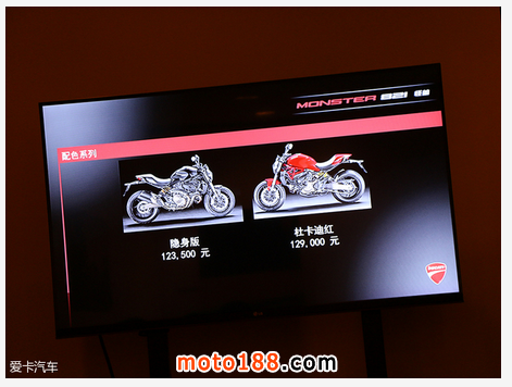繼一年前杜卡迪在米蘭國(guó)際摩托車(chē)展上發(fā)布了全新一代Monster怪獸1200之后,在2015年11月20日的廣州車(chē)展上,杜卡迪在中國(guó)市場(chǎng)發(fā)布了Monster怪獸821,一款Monster怪獸車(chē)系中的全新車(chē)型,該車(chē)“隱身版”售價(jià)為12.35萬(wàn)元,“杜卡迪紅”售價(jià)為12.9萬(wàn)元。