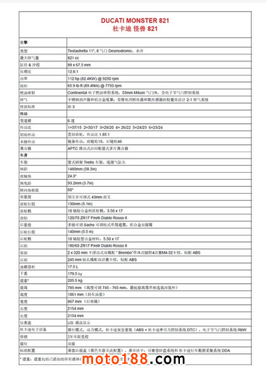 新車(chē)由杜卡迪821 Testastretta 11°發(fā)動(dòng)機(jī)輸出動(dòng)力,最大功率84kW(112Ps),峰值扭矩89Nm,另外拜179.5kg的車(chē)重所賜,Monster怪獸821的操控更加順暢且平易近人,當(dāng)然也同時(shí)令人印象深刻。輕量化車(chē)身之后的極簡(jiǎn)主義和性能的混搭讓Monster怪獸821,以一種獨(dú)特的摩托感受改變著人們的騎行方式。