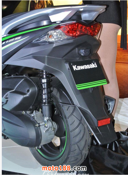 J125搭載125c.c.水冷單缸發動機,采用DOHC(雙頂置凸輪軸)并配備無級變速箱,最大馬力13.8匹,峰值扭矩12牛米。新車采用可調節雙后減震,為騎士帶來輕松舒適的騎行體驗,前后剎車均采用花瓣式碟盤,并可選配ABS;J125車座下有寬敞的儲物空間,可容納一個全盔和A4紙大小的公文包,另外,該車還有一個內置12v插座的手套箱、物品鉤和后載貨架用于放置物品;為安全起見,川崎還為J125配備了防盜點火開關。