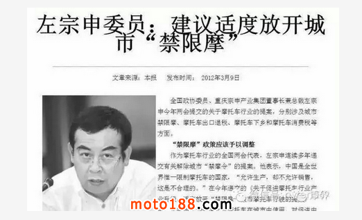 第十二屆全國人民代表大會第三次會議和政協第十二屆全國委員會第三次會議,分別于2015年3月5日和3月3日在北京開幕。據說“摩友委員的左宗申委員”一如既往進京出席兩會。看了一下左委員歷年的兩會提案,基本上都是以呼吁解除“禁限摩”政策為主。